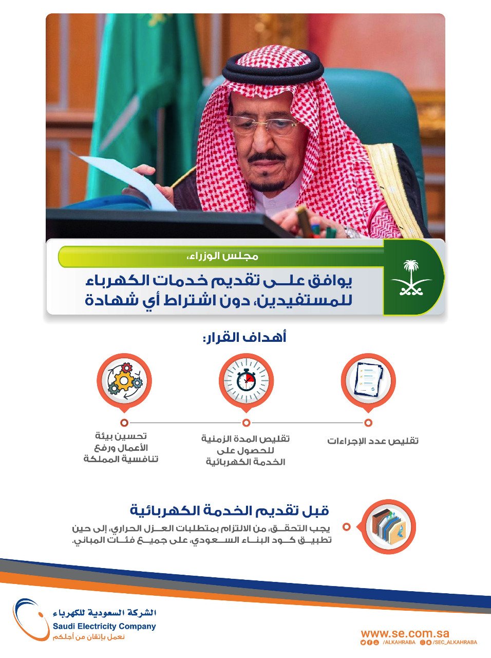 السعودية للكهرباء على تويتر مجلس الوزراء يوافق على تقديم خدمات الكهرباء الى المستفدين حسب الاجراءات النظامية دون اشتراط اي شهادة وذلك لتحسين بيئة الاعمال في المملكة ورفع تنافسيتها السعودية للكهرباء Https T Co Mteguidhpv